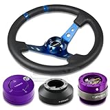 NRG-SRK-105H+200PP+101PP+016RBL, NRG Innovations 13.78" 350mm 3" Deep Dish Style Black Leather Blue Center Marking Blue Spokes Racing Steering Wheel Combo with 6 Hole Short Hub Adapter with Gen 2.0 Purple Quick Release with Purple Lock Hub Kit SRK-105H