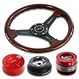 NRG-SRK-140H+200RD+101RD+015RBK, NRG Innovations 13" 330mm Deep Dish Style Wood Grain Black Spokes Racing Steering Wheel Combo with 6 Hole Short Hub Adapter with Gen 2.0 Red Quick Release with Red Lock Hub Kit SRK-140H